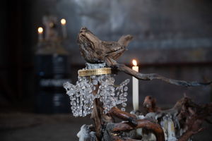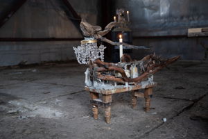 Wood, concrete, wax, metal, crystal